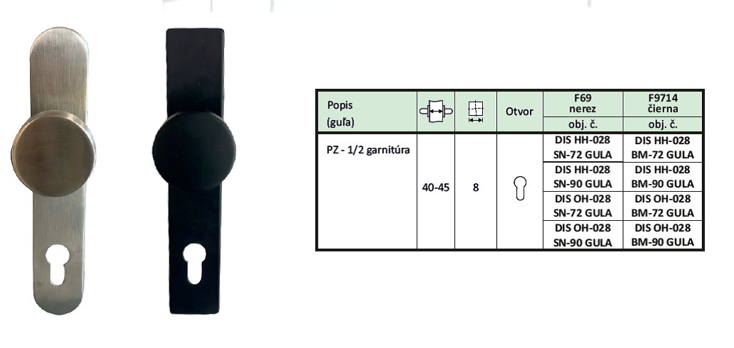 - rozstup LM72 mm šírka štítku 40 mm pre hrúbku dverí 34-47 mm