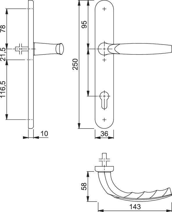 - iba vnútorná kľučka s oblým štítkom