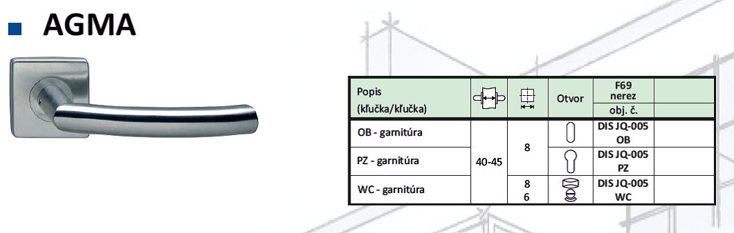 - možnosť prevedenia aj OB – obyčajný kľúč, PZ – cylindrická vložka, WC tiež aj variant kľučka-guľa