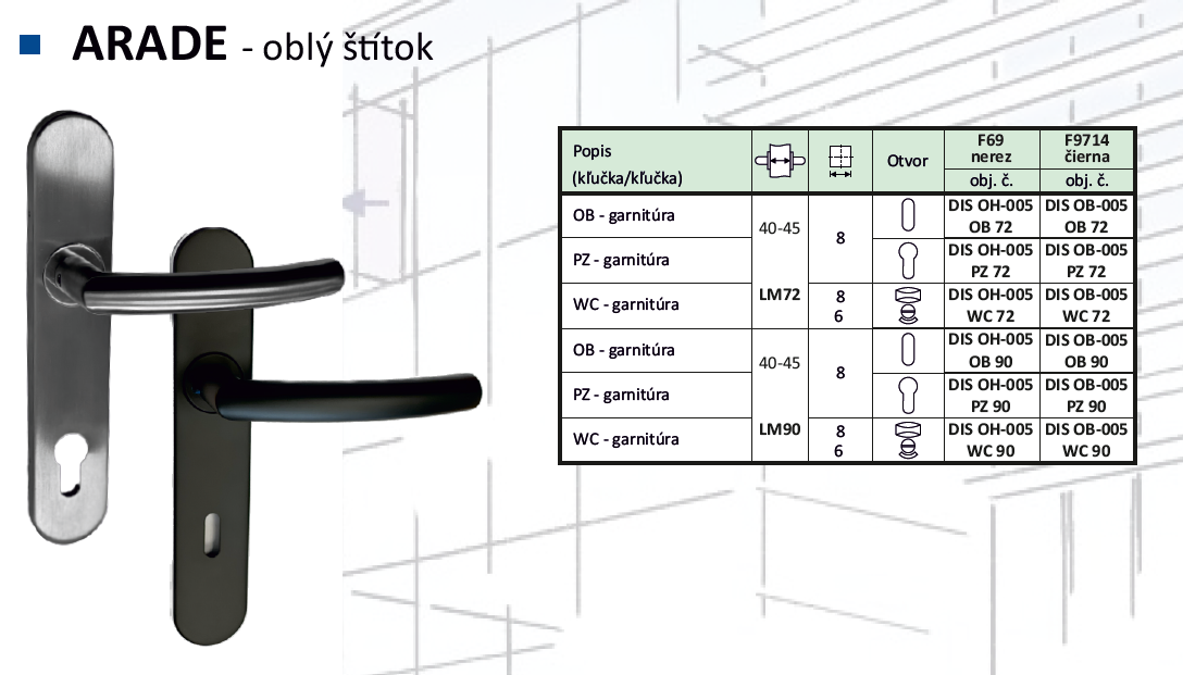 - rozstup LM72 mm šírka štítku 40 mm pre hrúbku dverí 34-47 mm