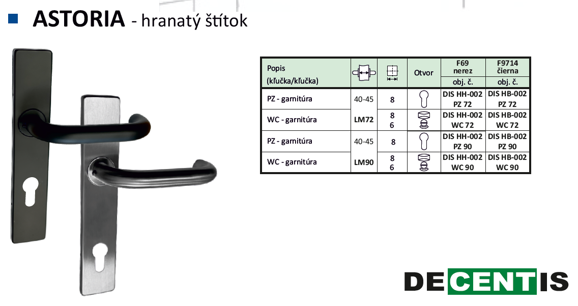 interiérová kľučka-kľučka DECENTIS ASTORIA • kľučka nerezová F69 • PZ