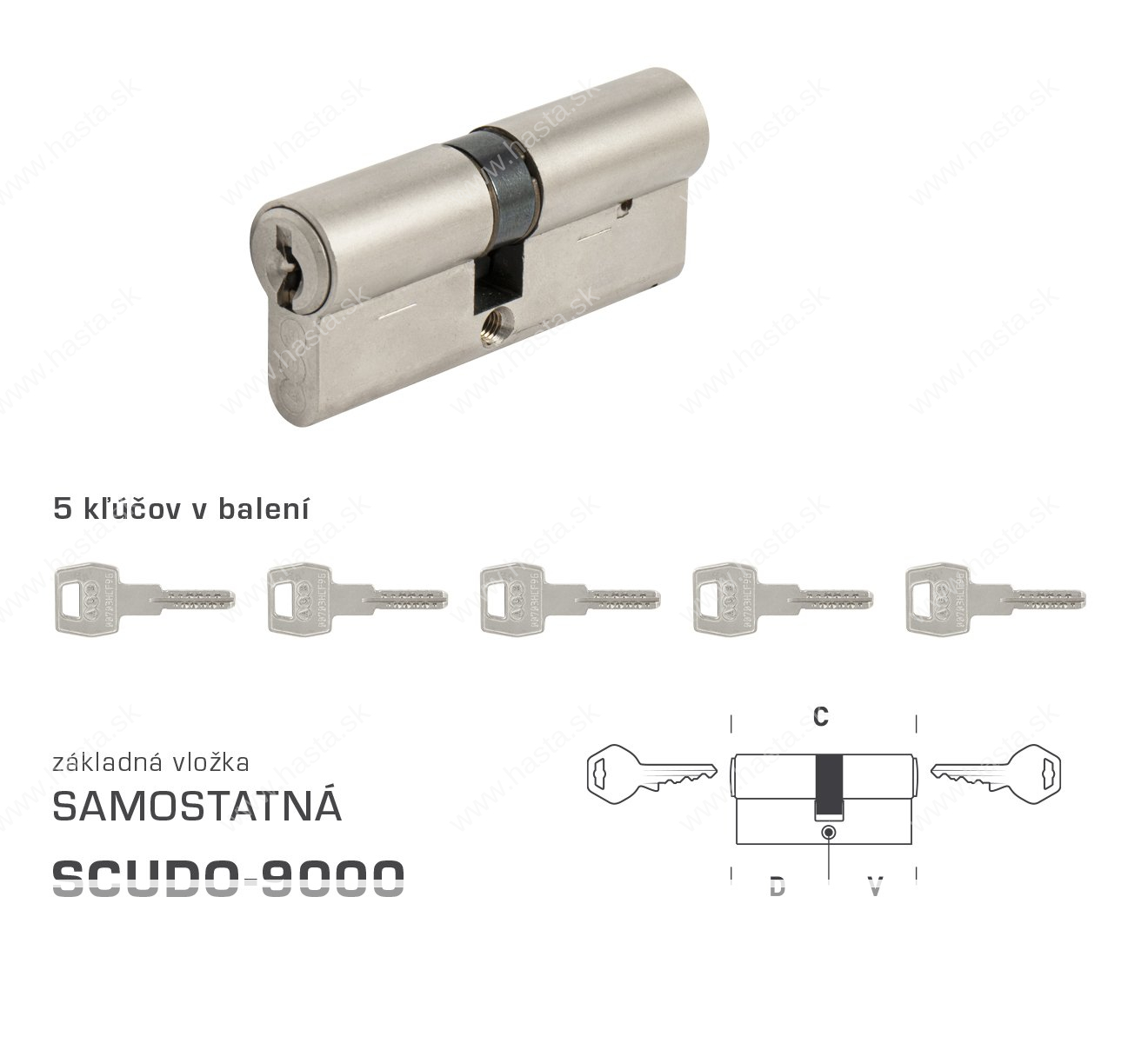 bezpečnostná cylindrická vložka • AGB • SCUDO 9000 • rozmer 40/45 mm