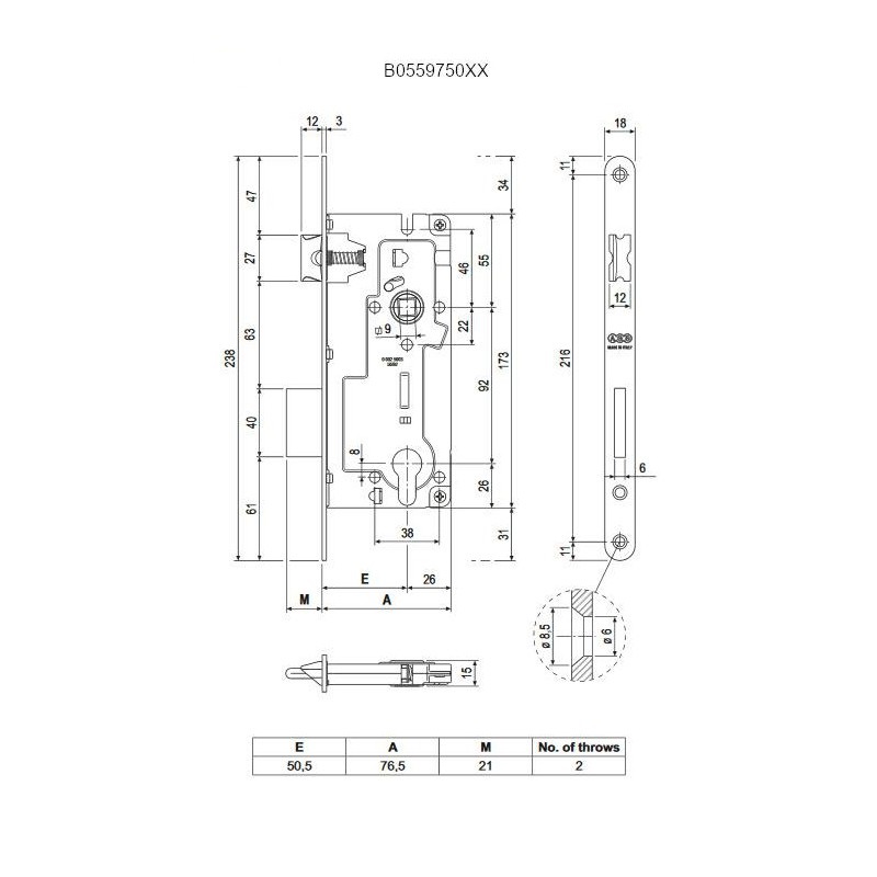 zadlabávací zámok DM50 • rozstup LM 92 mm • uzamykanie cylindrickou vložkou PZ • farba nikel • špičková kvalita