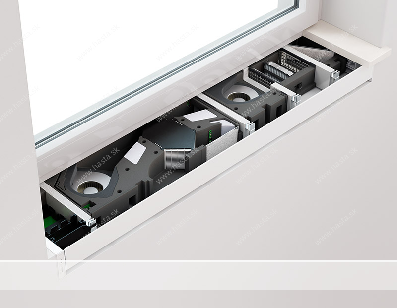 - Nenápadná integrácia ventilátora/ventilátora/dúchadla do ostenia, steny alebo prekladu