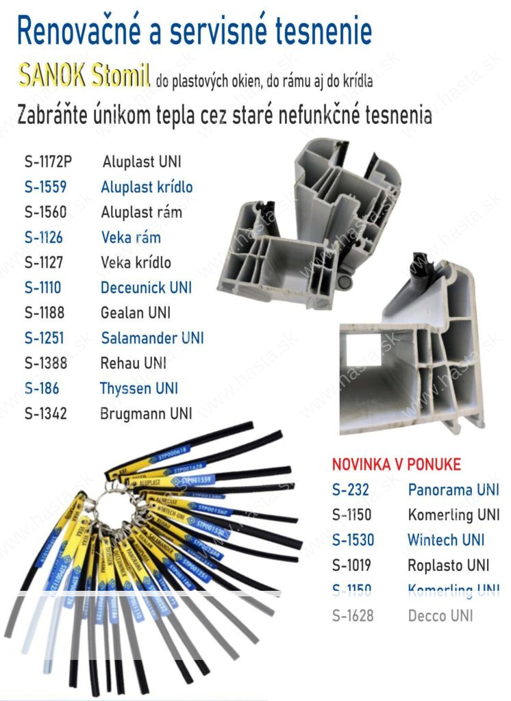 - Tesnenia ponúkame pre rôzne profily plastových okien v čiernej farbe.